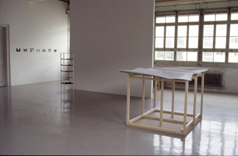 Puisant ses références dans un corpus conceptuel mâtiné d’une certaine poésie, l’artiste genevois ausculte, à travers l’architecture du mouvement international (par le biais de photographies prises lors d’un voyage en Italie ou d’installations renvoyant à l’idée de support, d’abri ou de délimitation territoriale), l’archéologie de notre modernité.