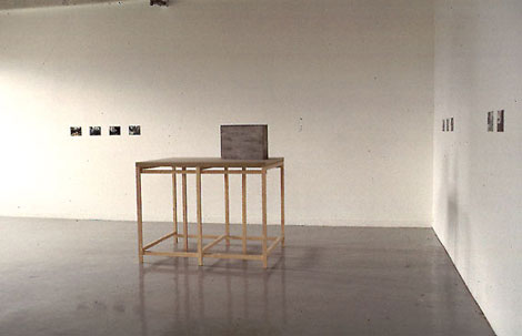 Le travail de Pierre Vadi, jeune artiste genevois dont c’est la première exposition personnelle, allie à une discrétion peu bavarde (sobriété des installations et des prises de vues) une richesse de sens qui se loge souvent dans le détail (rapport des matériaux, indices photographiques). Ainsi, qu’il s’agisse d’une vue de l’ancienne usine Fiat de Turin dont les parois vitrées sont aujourd’hui rendues aveugles par les protections qui les recouvrent, ou d’un socle qui mêle le frêne et le bois aggloméré pour supporter un petit mur de béton, les pièces de Pierre Vadi se dévoilent petit à petit.