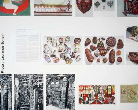 Chaque item contient un ensemble de reproductions introduit par un texte allant d’une présentation littéraire et thématique jusqu’à un diagnostique par la description des indices de névrose et pathologie. Se pose bien sûr la question de la définition des œuvres : lieu d’une expression pure, document d’un état mental ou encore image symbolique et connotée selon une grille établie. L’œuvre est le fruit d’une imagination obscure ou une représentation interdite de toute autonomie. C’est donc dans la juxtaposition texte–image, que cet objet s’avère être en fait celui de l’impossible réconciliation.